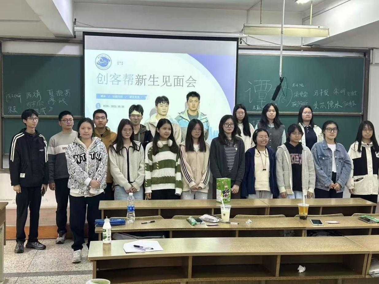 1026日,滨江楼BN201教室内氛围热烈,创客帮 “创客讲谈”活动暨新生见面会在此顺利举行。本次活动由创客帮主席陈倩主持,不仅吸引了大批新老社员积极参与,还特别邀请到教务处创新创业管理中心刘海菊老师参会指导,为校园创新实践注入新活力。